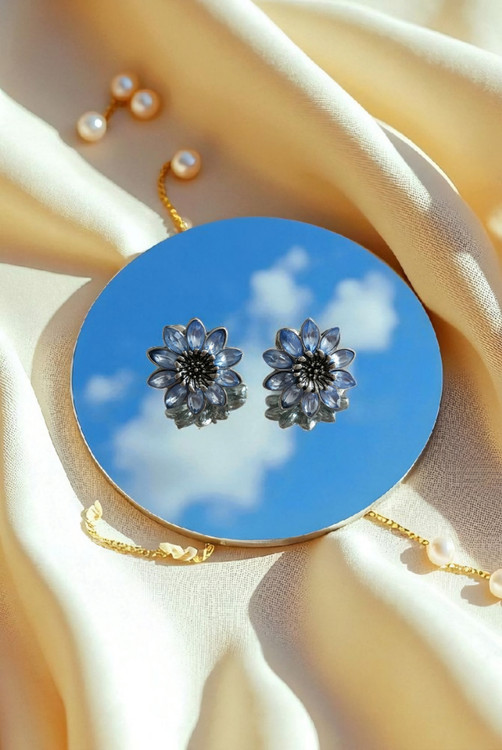گوشواره استیل کریستالی طرح گل Iam | رنگ نقرهای آبی ملایم